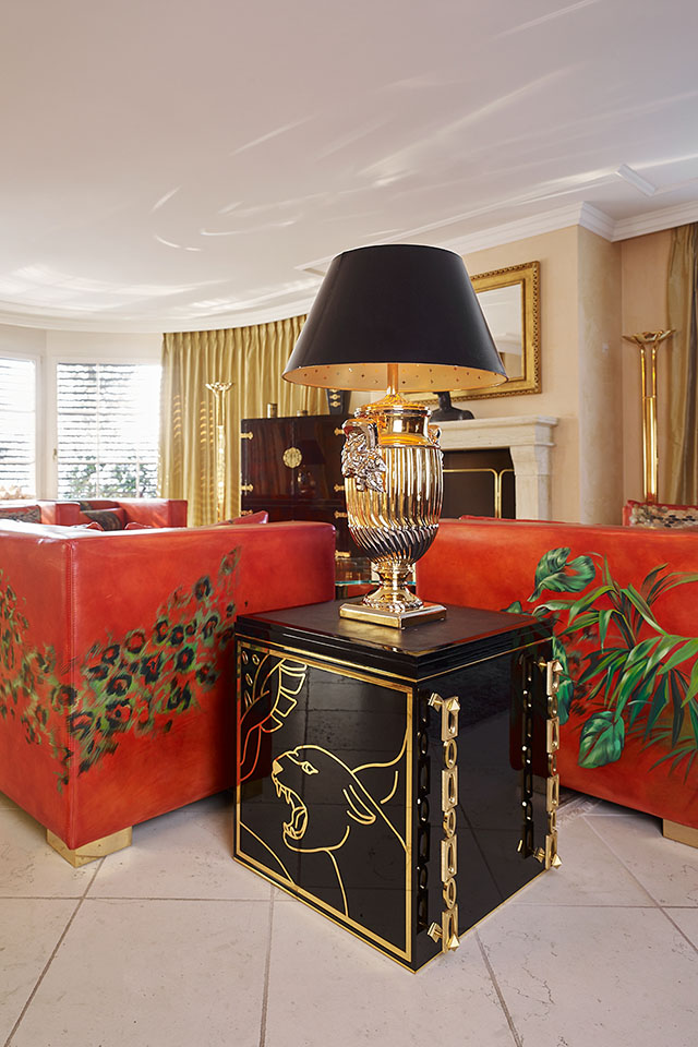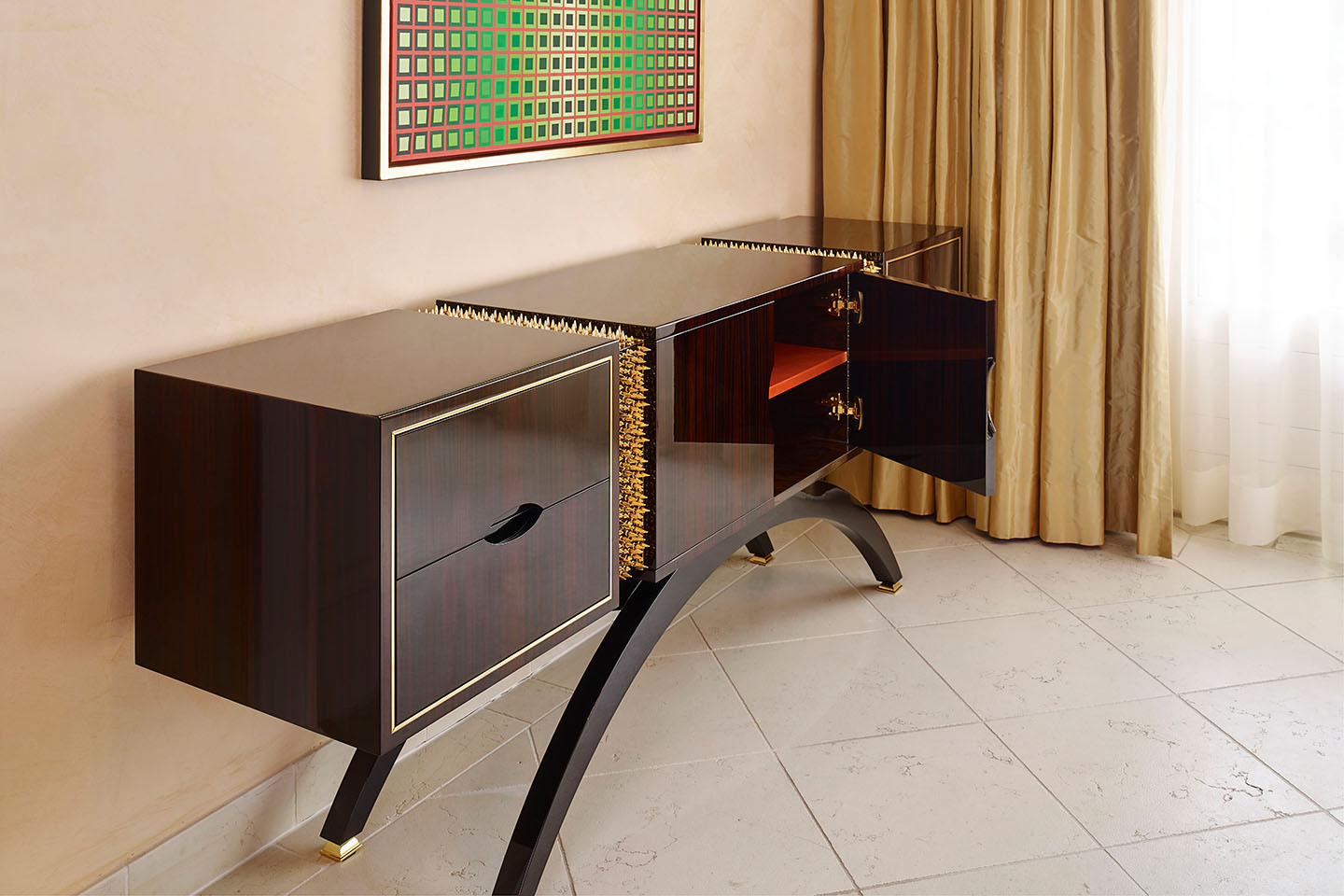 24-carat gold frame inlays in the drawer bases and door