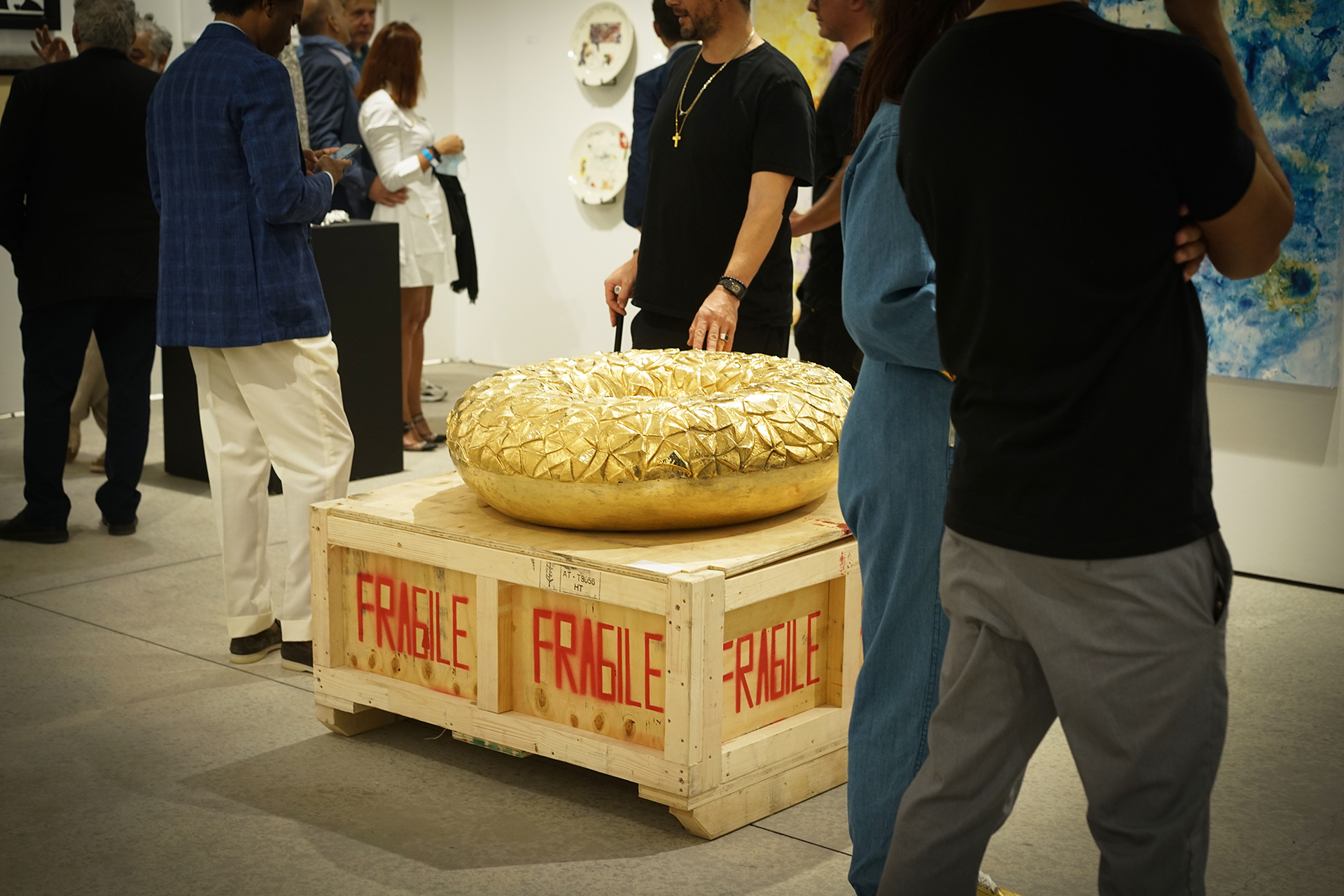 Rudolf Budja creates a familiar atmosphere and meeting: Hermann and his "Golden Donut", which spans a diameter of a whole metre, are attracting attention internally, generating new acquaintances and resulting in lively personal exchanges, discussions and visions with other artists like Danny Minnick, Florian Reinhardt, Steve Hash and Wulf Treu...